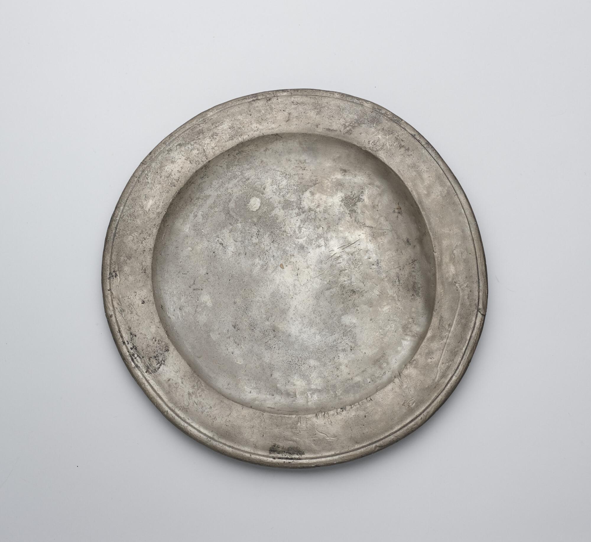 Tinnen bord of schaal, met VOC stempel in de rand.