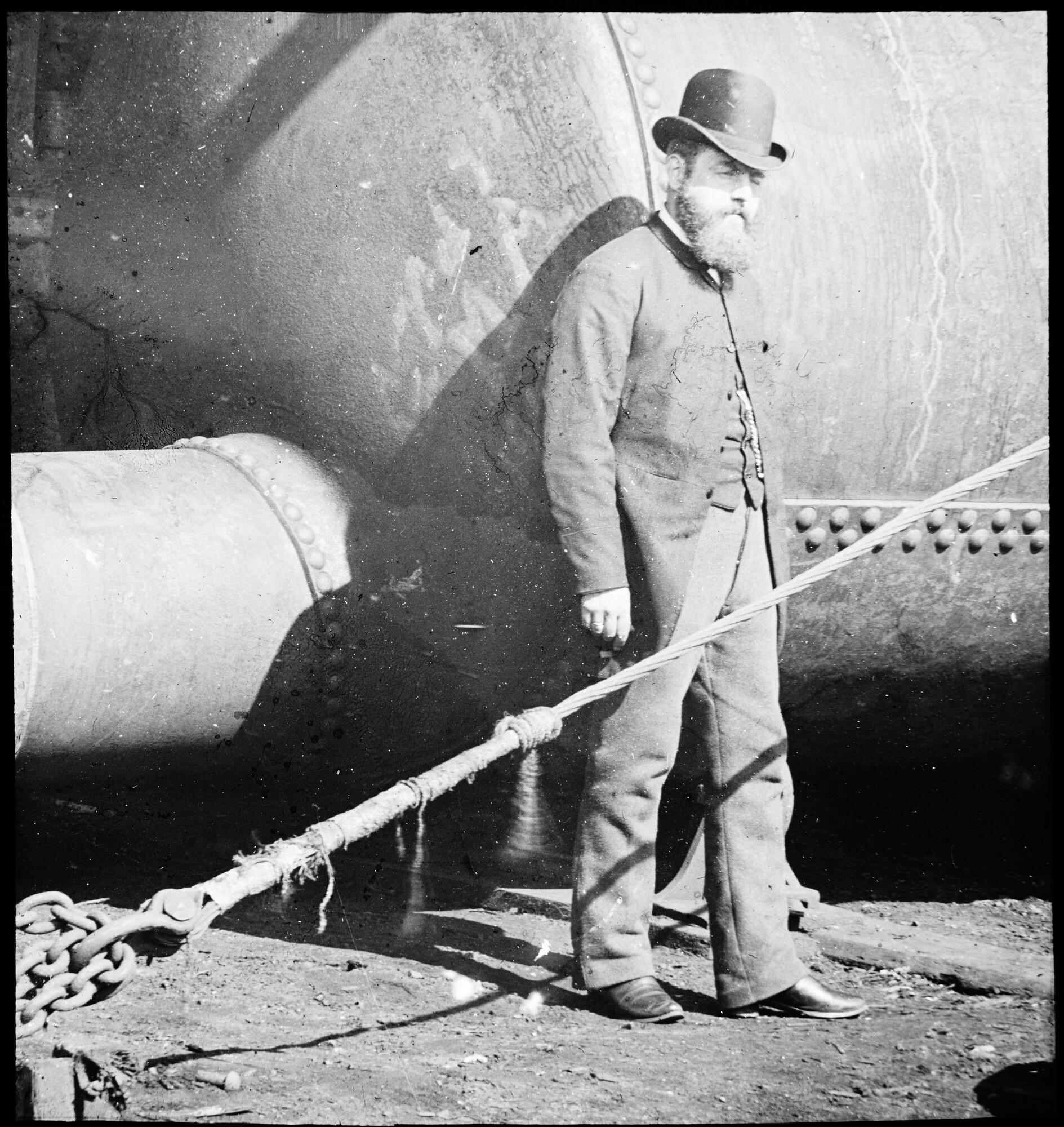 Lantaarnplaatje van de heer W.A. Hes voor een distilleerketel in aanbouw op de werf De Nachtegaal, 1890.