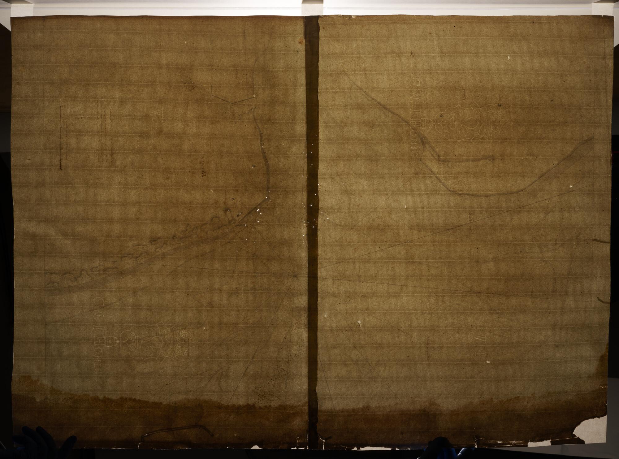 Zeekaart in handschrift van de ingang van het Zeegat van Texel met het Marsdiep tussen Texel en Den Helder, met de Haaksgronden, met de zandbanken en dieptecijfers