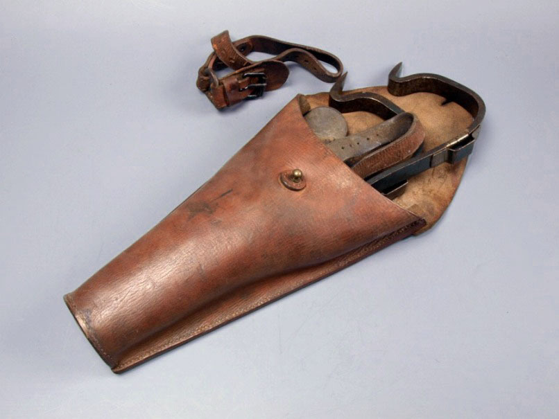 Foudraal compleet met riemen, met twee metalen haken