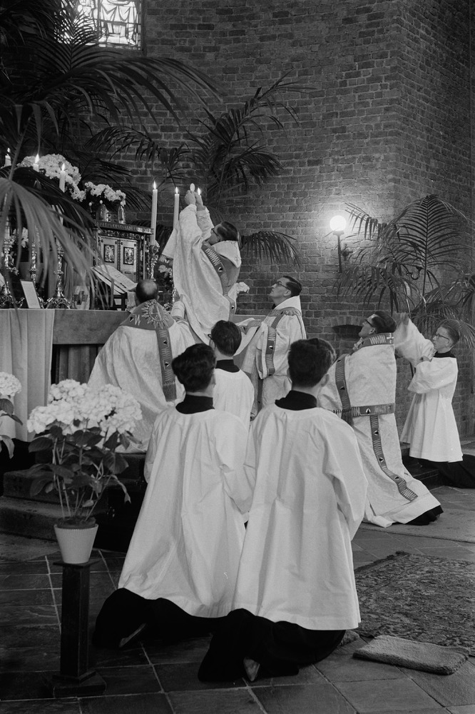 Zusters Vincentius a Paulo onder een ereboog bij 25-...