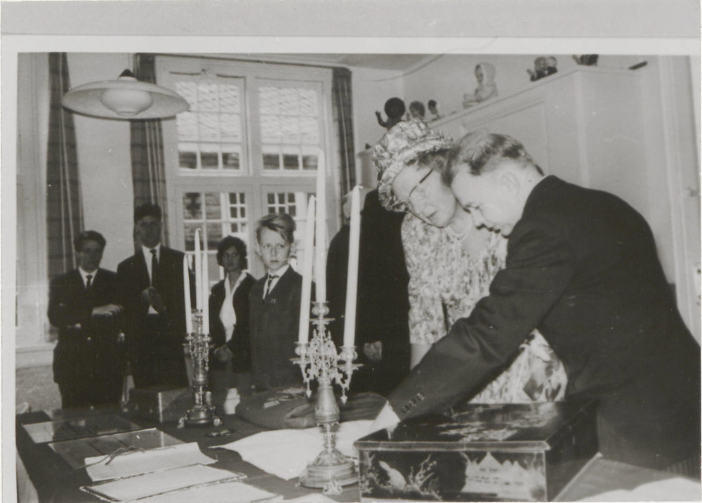 koningin Juliana en dhr. B. Hoekstra in het wees-hui...