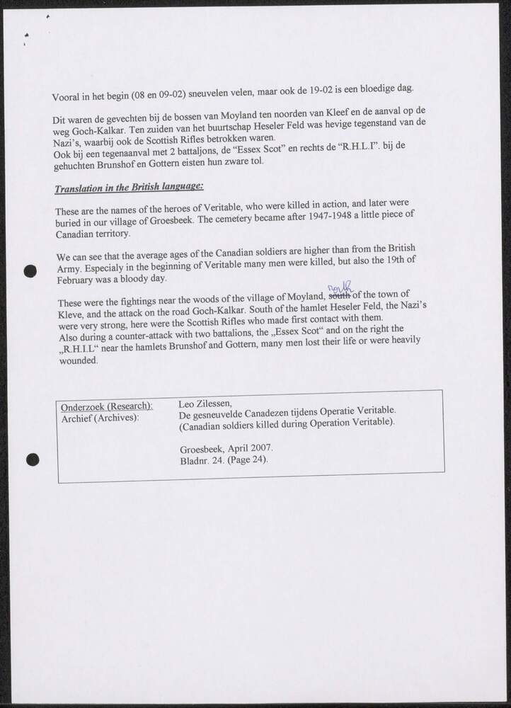Rapport 26 april 1945 over Hoensbroek door J. Schellinx