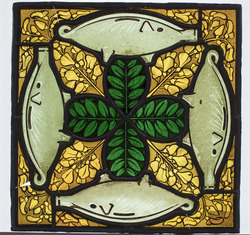 Schildering op glas-in-lood van bloem- en bladmotiev...