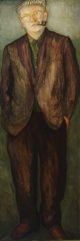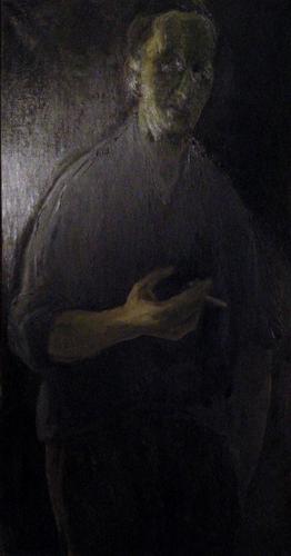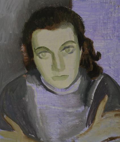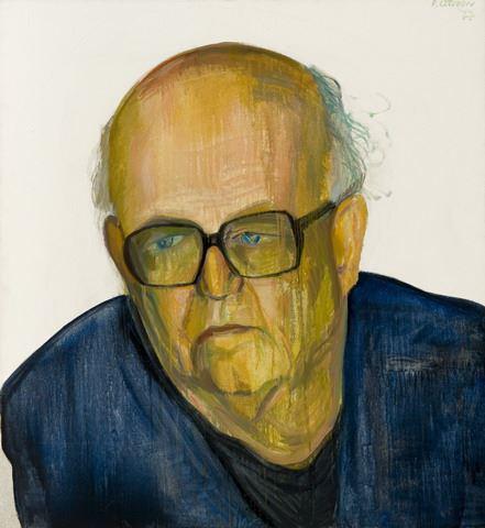 Atelier met kop op de voorgrond, op de achtergrond e...