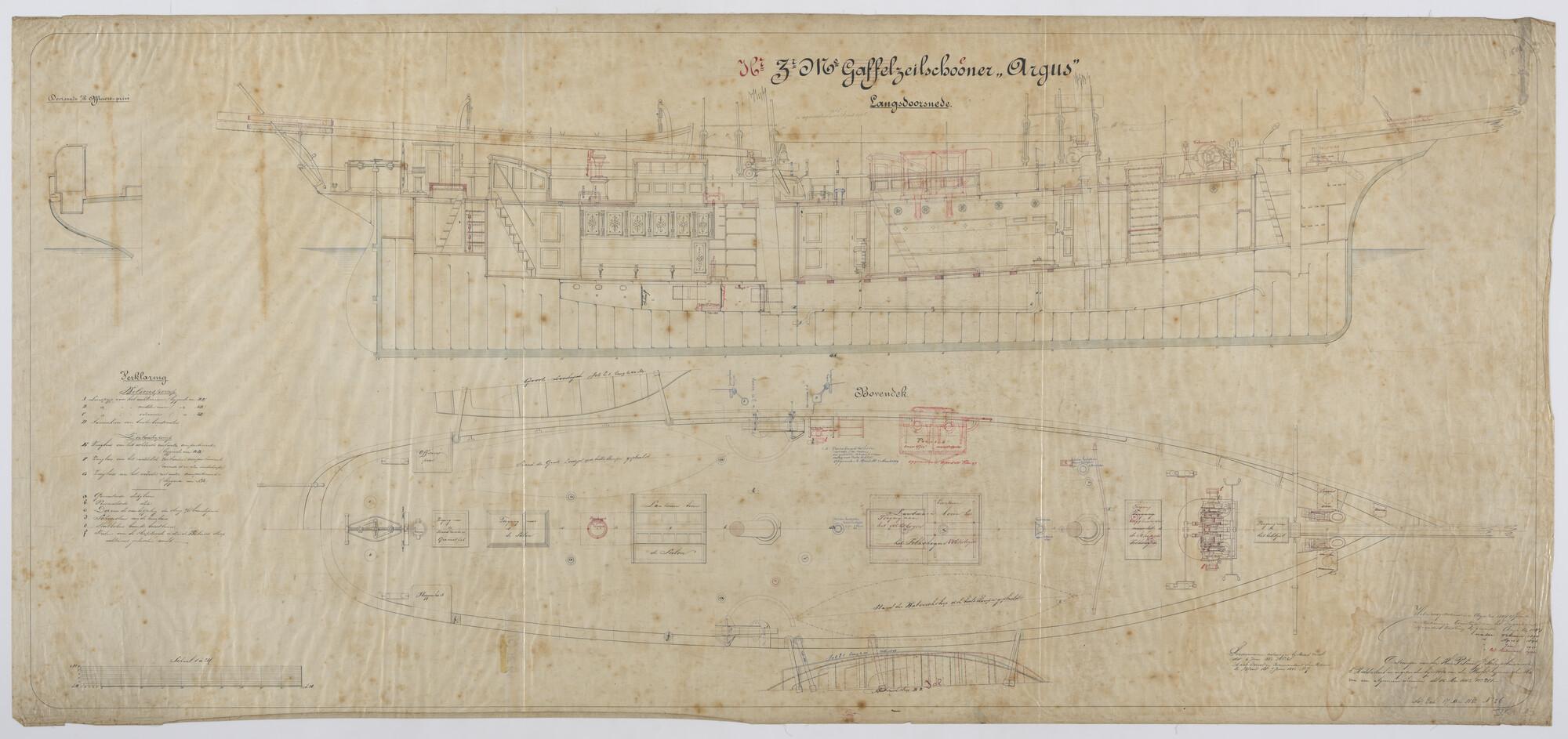 De schoener Zr.Ms. 'Argus', 1881. Bovendek en tussen...