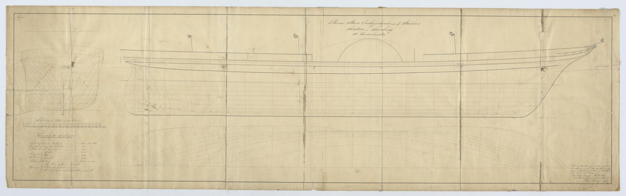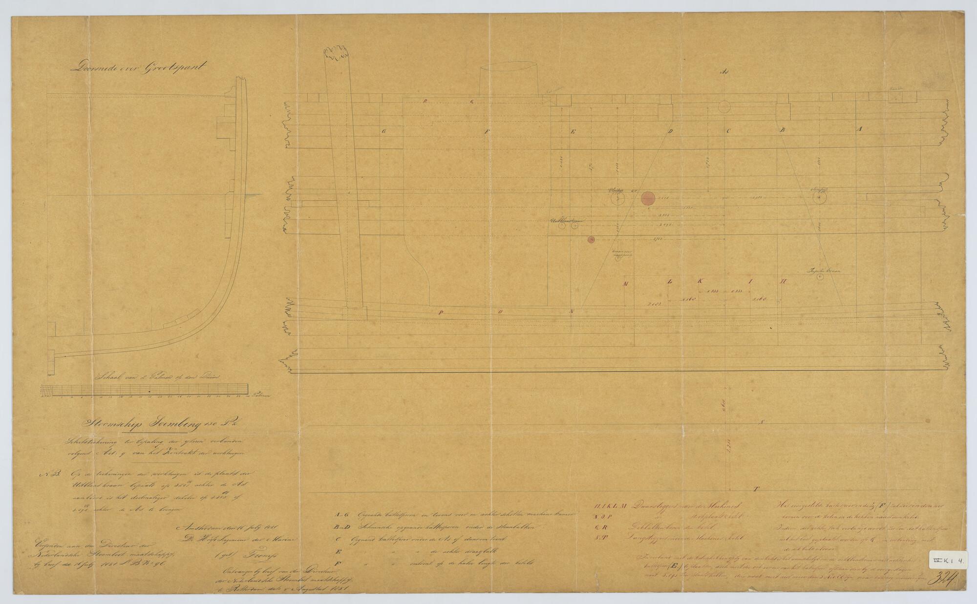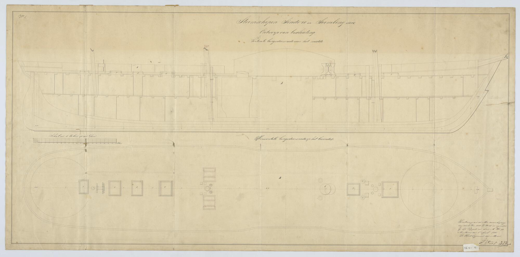 Zr.Ms. 'Sindoro' en 'Soembing', 1850. Doorsnede van ...