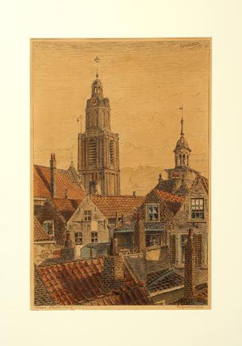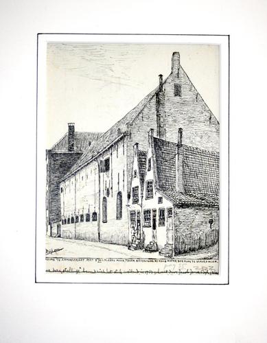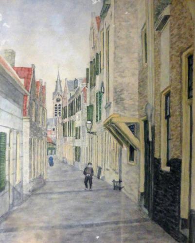 Ingekleurde tekening. Het Achterom Vlaardingen gezie...