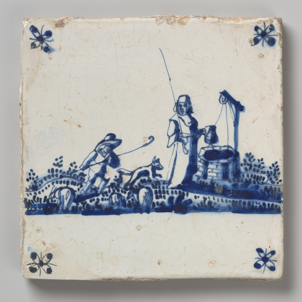 tegel van aardewerk met tinglazuur, voorstellende: s...