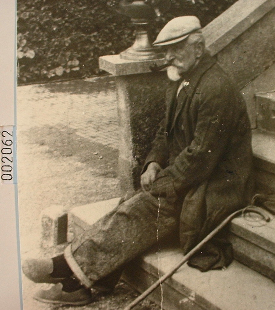 Jan Roes/ Jan de zagenslieper op de trap van het Dom...