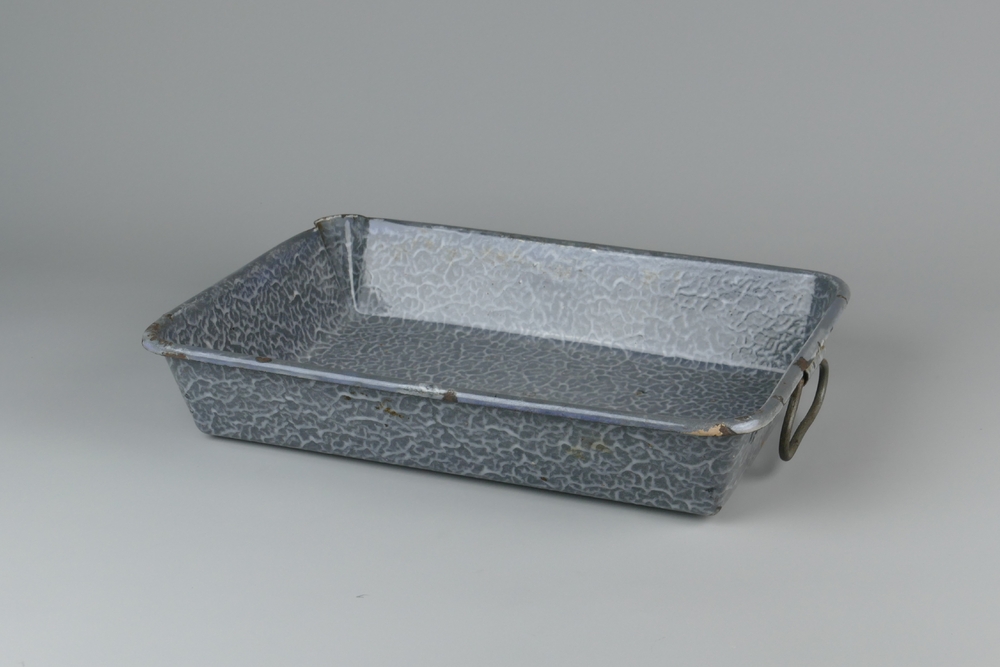 braadslede, gewolkt grijs emaille met twee handgrepe...