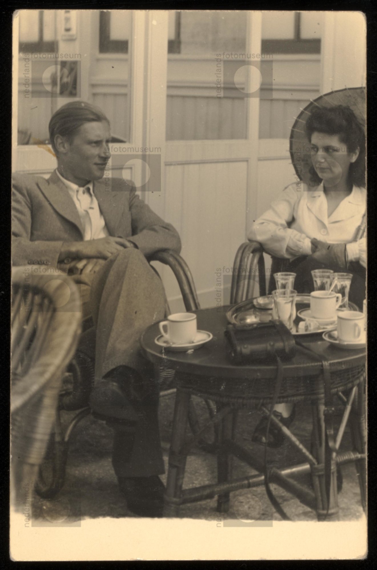 Henk van der Horst en Bertha Dikker op een terras, v...