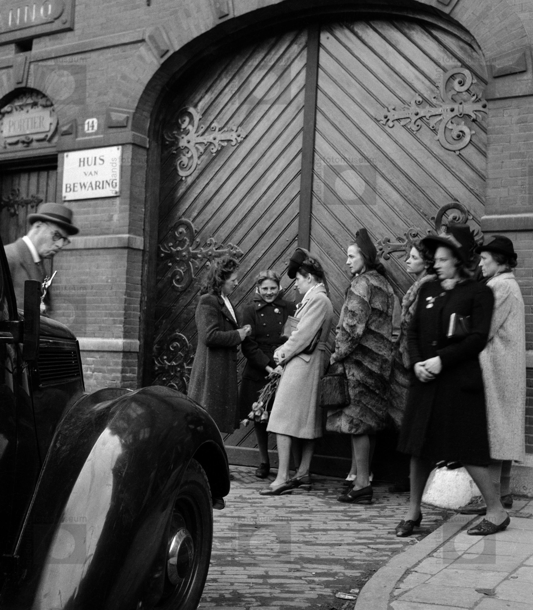 Vrouwen wachten voor het Huis van Bewaring op de bev...