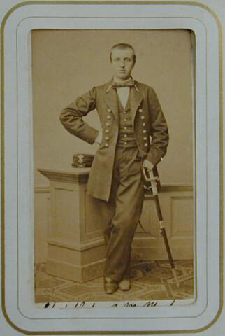 Portretfoto van adelborst der eerste klasse H. de Jo...