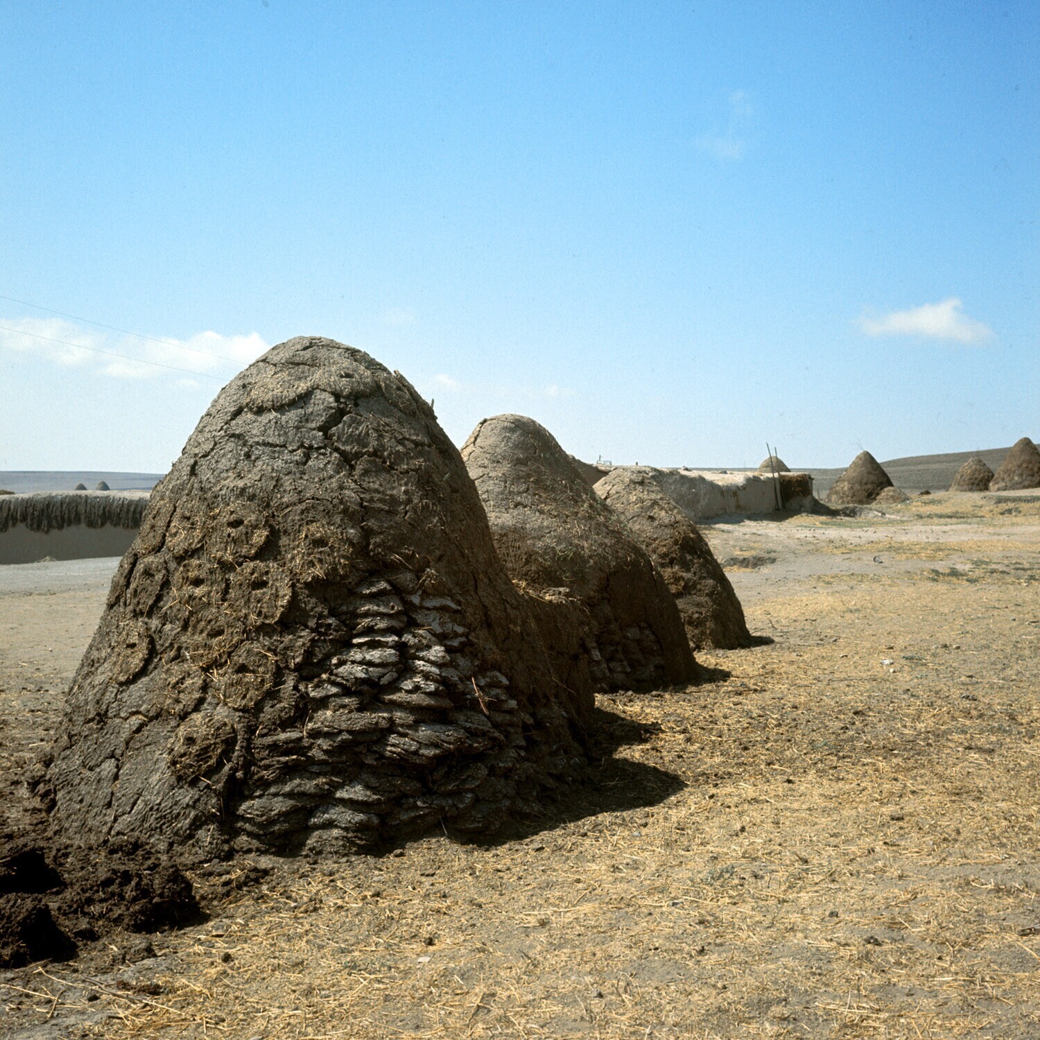 Mesthopen met gedroogde mest voor brandstof in Noord...