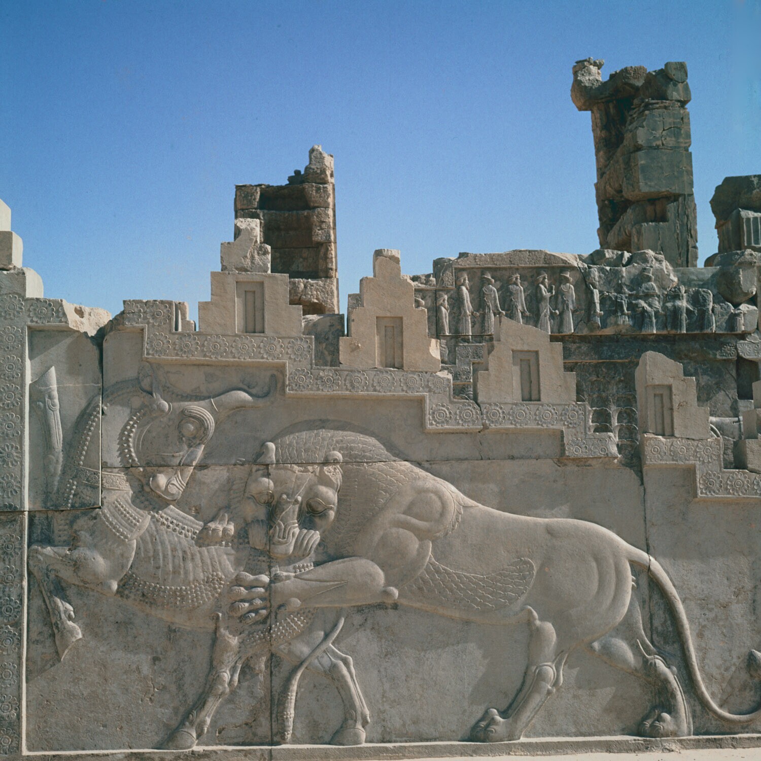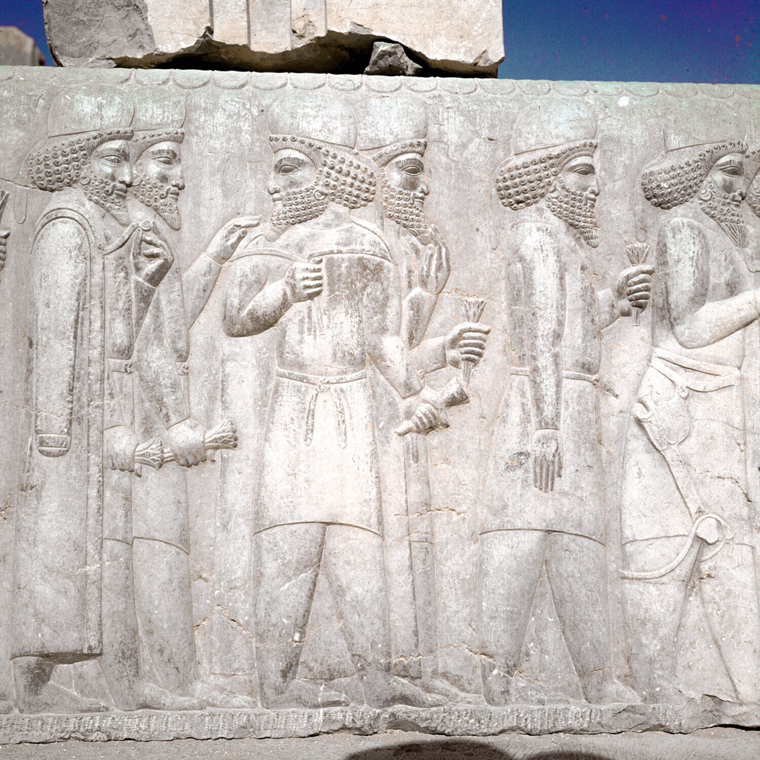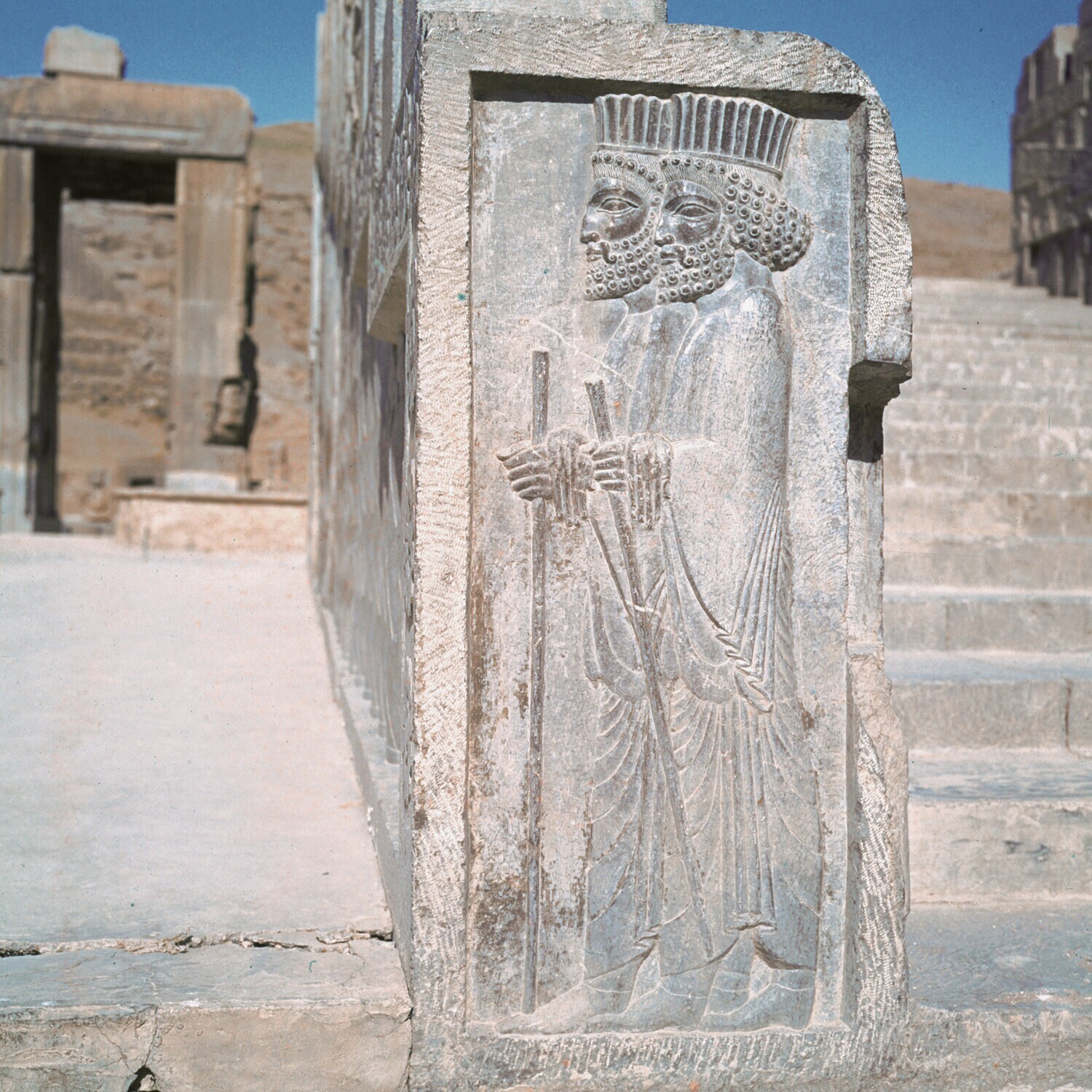 Reliëf met drie krijgslieden, grote trap, Persepolis.
