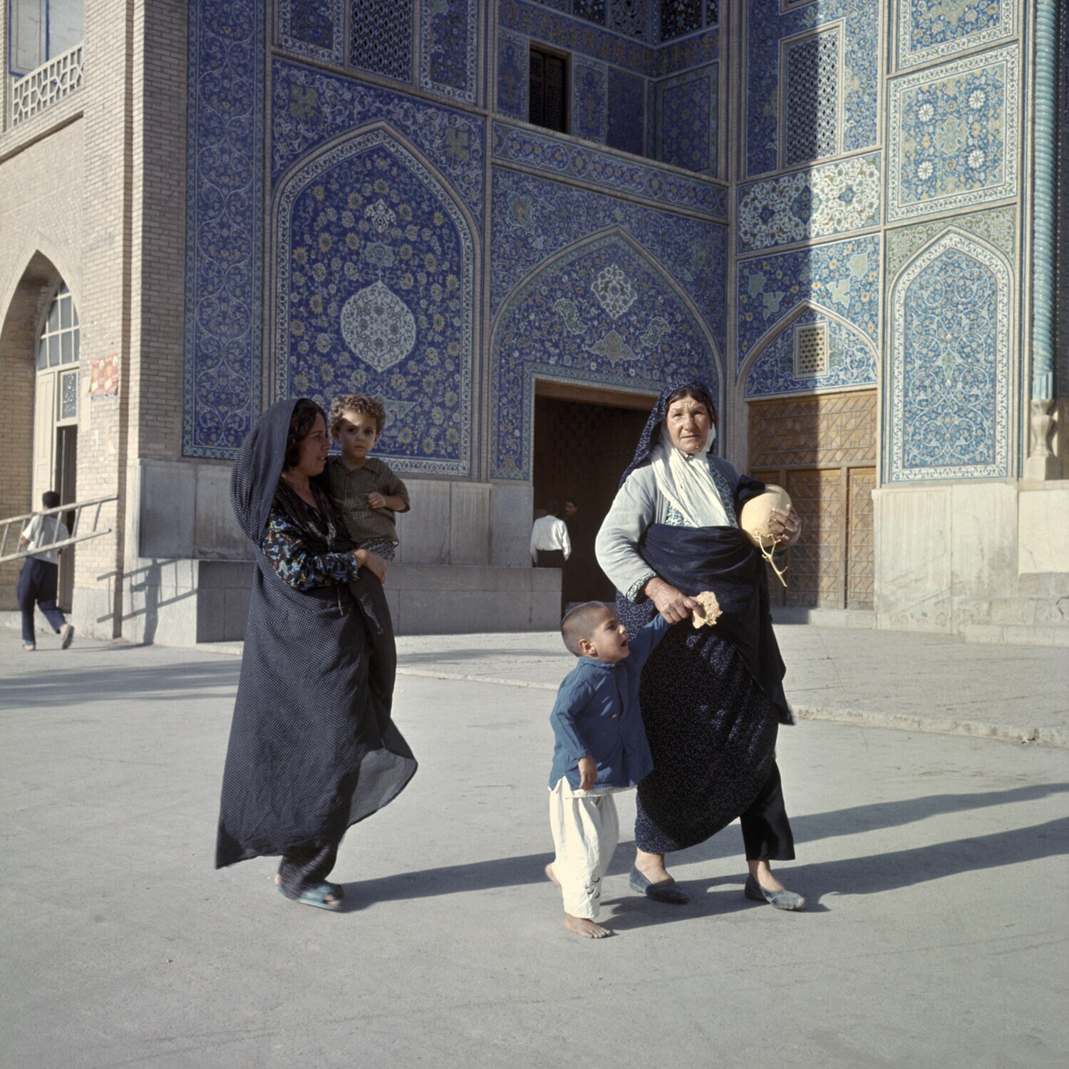 Vrouwen en kinderen voor de Vrijdag Moskee te Isfahan.
