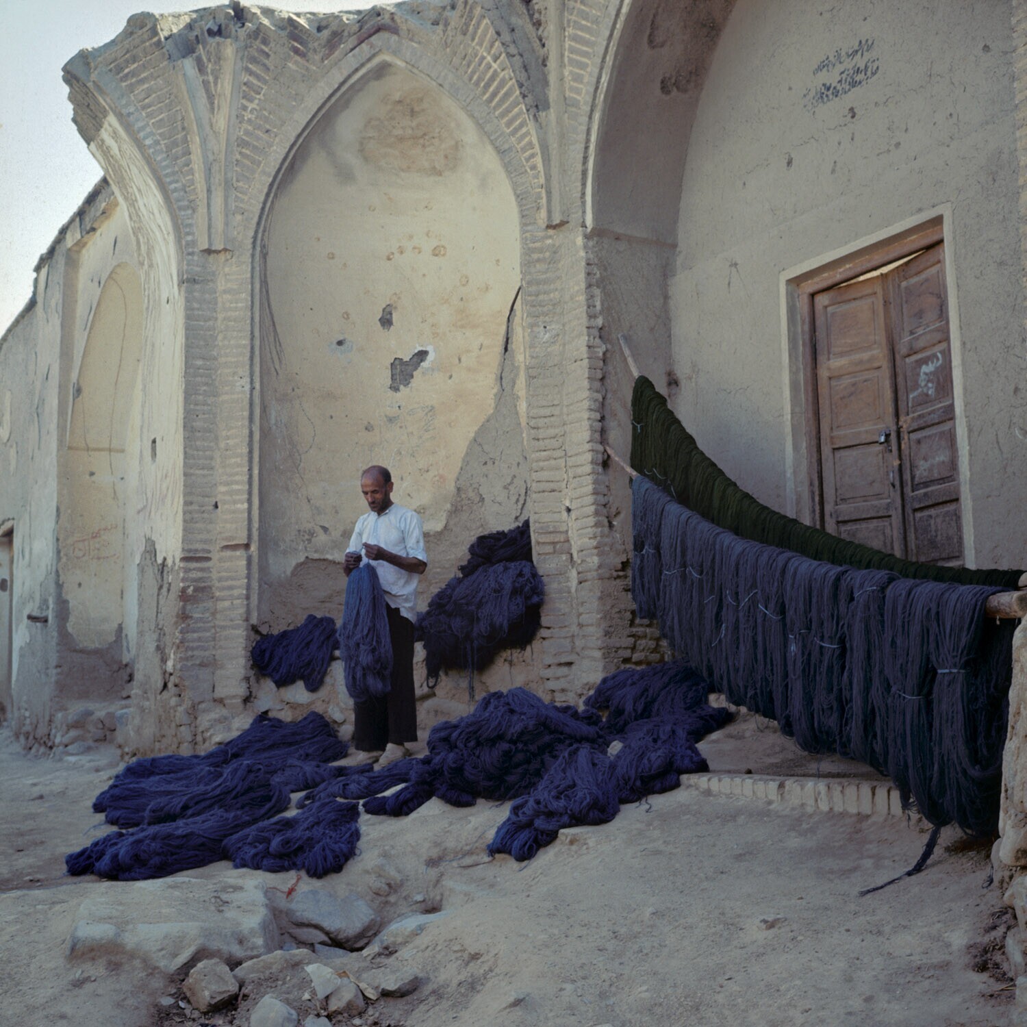 Tapijtknoper in museum voor Schóne Kunsten in Teheran