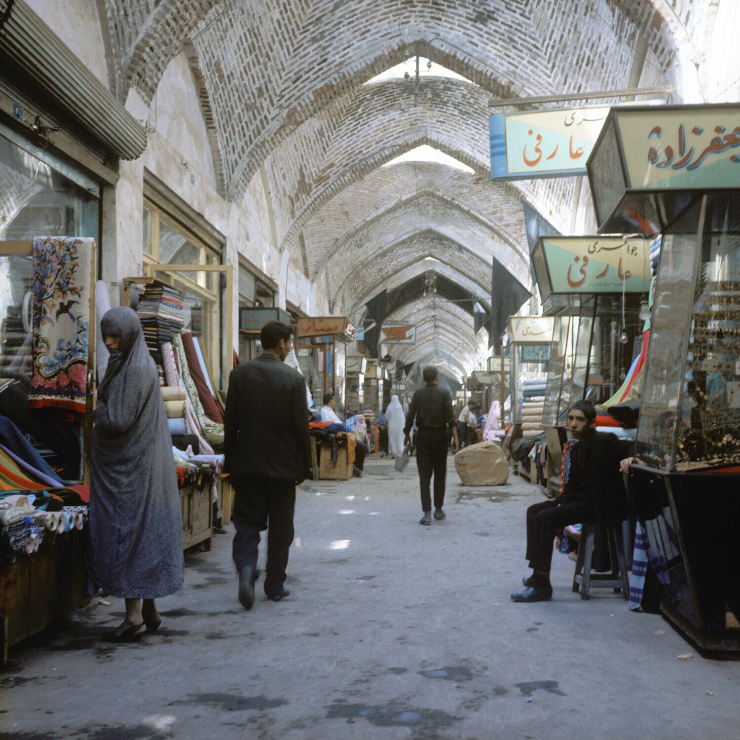Bazr van Tabriz met stalletjes voor tapijt- en texti...