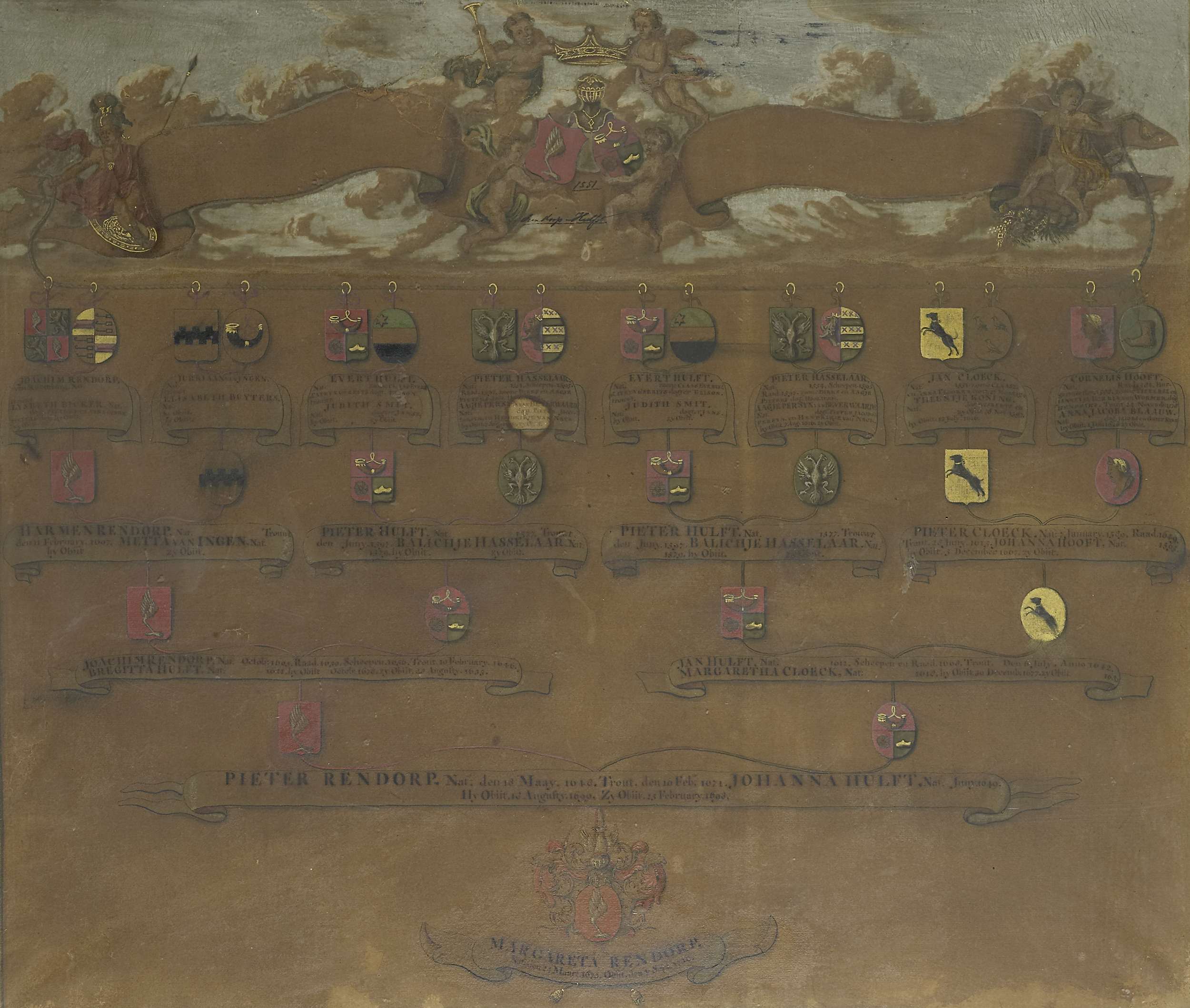 Kwartierstaat met de wapens van de zestien kwartiere...