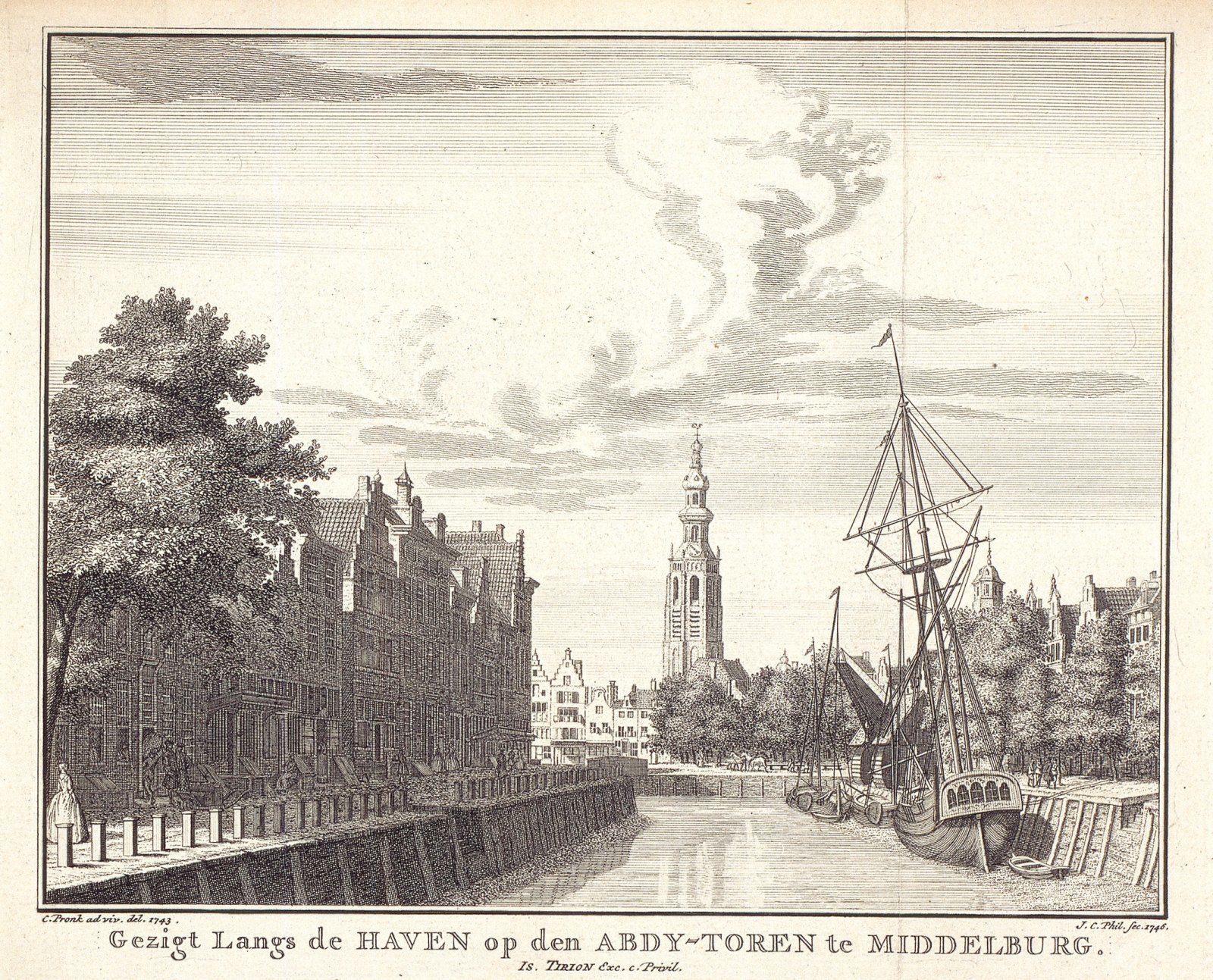 Gezigt langs de haven op den Abdy-toren te Middelburg