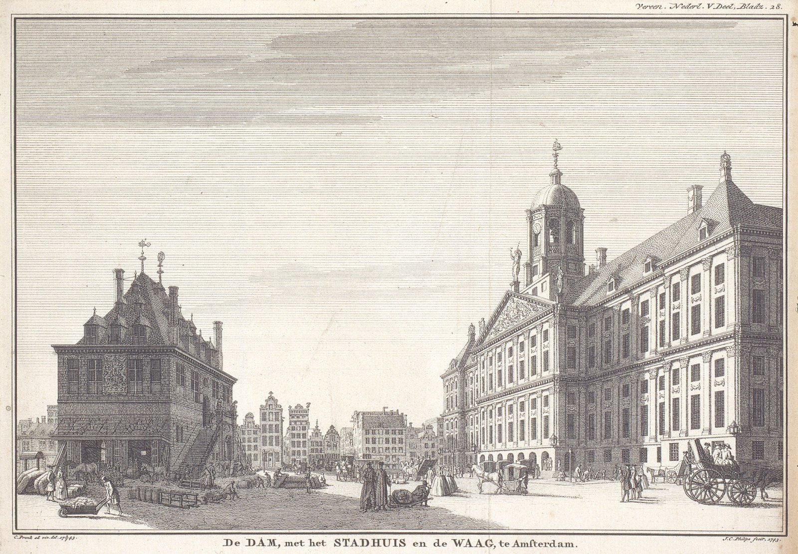 De Dam, met het Stadhuis en de Waag, te Amsterdam