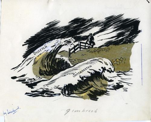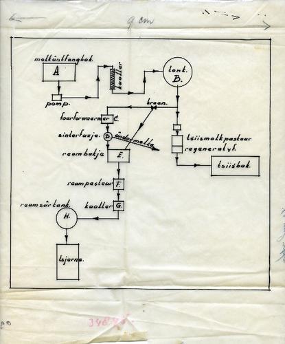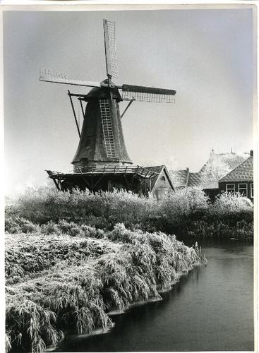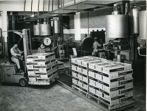 Foto in zwart-wit van de koekenperserij in een veevo...