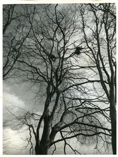 Foto in zwart-wit van kale bomen door J.D. de Jong, ...