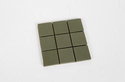 Staal van negen keramieken tegeltjes (groen, kleur 8...
