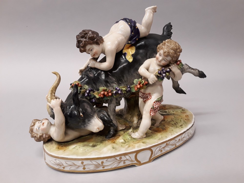 Beeldengroep met bok en spelende kinderen