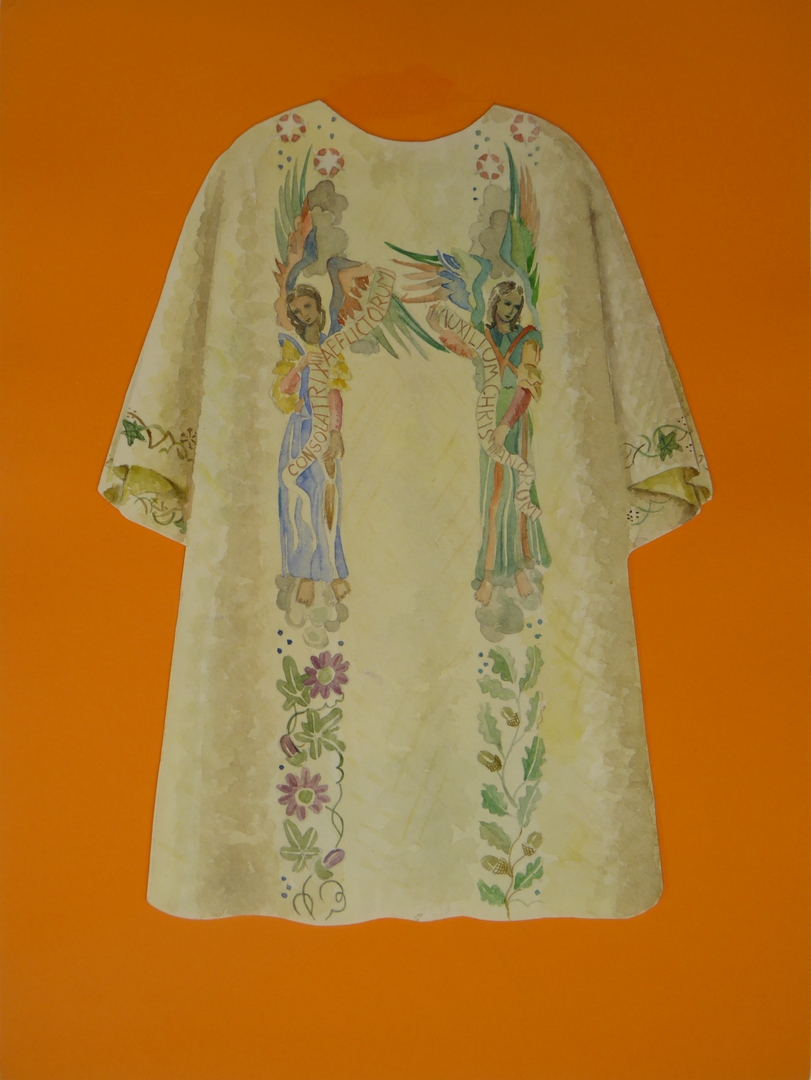 Ontwerp koorkap met pelikaan als symbool van de euch...