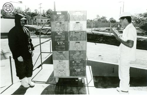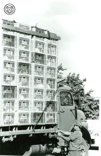 Aankomst van een vracht kippen bij de slachterij