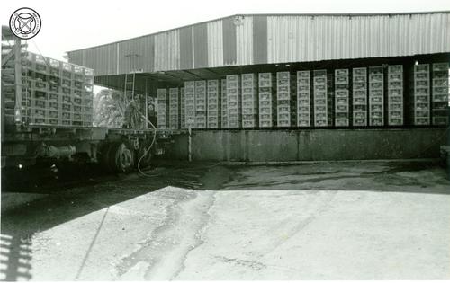 Aankomstschuur van levende kippen