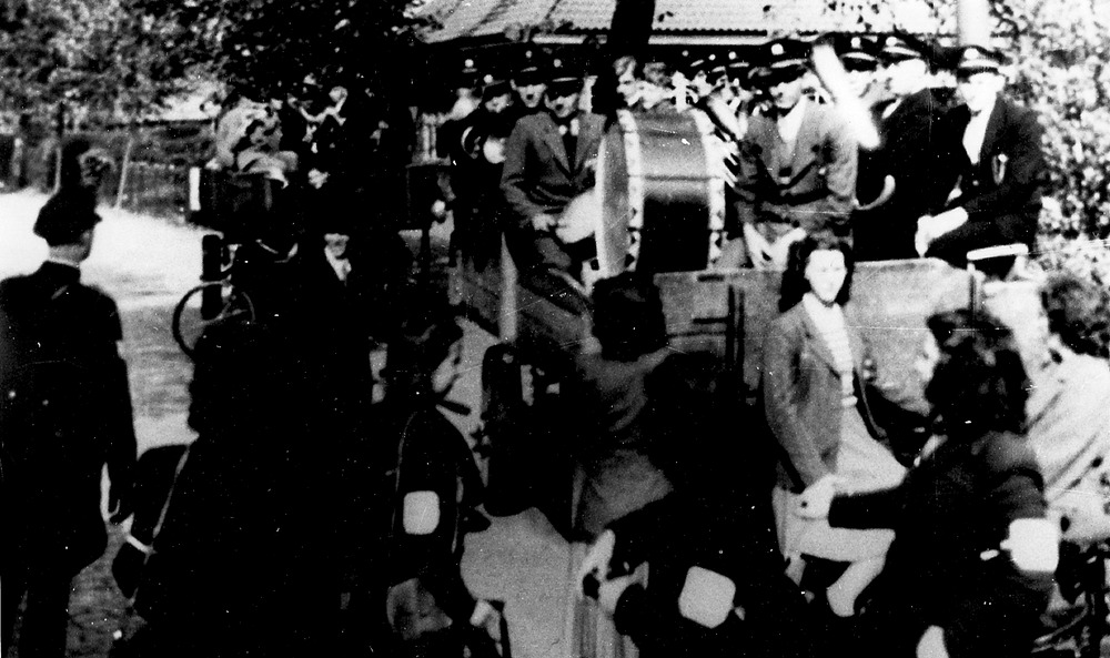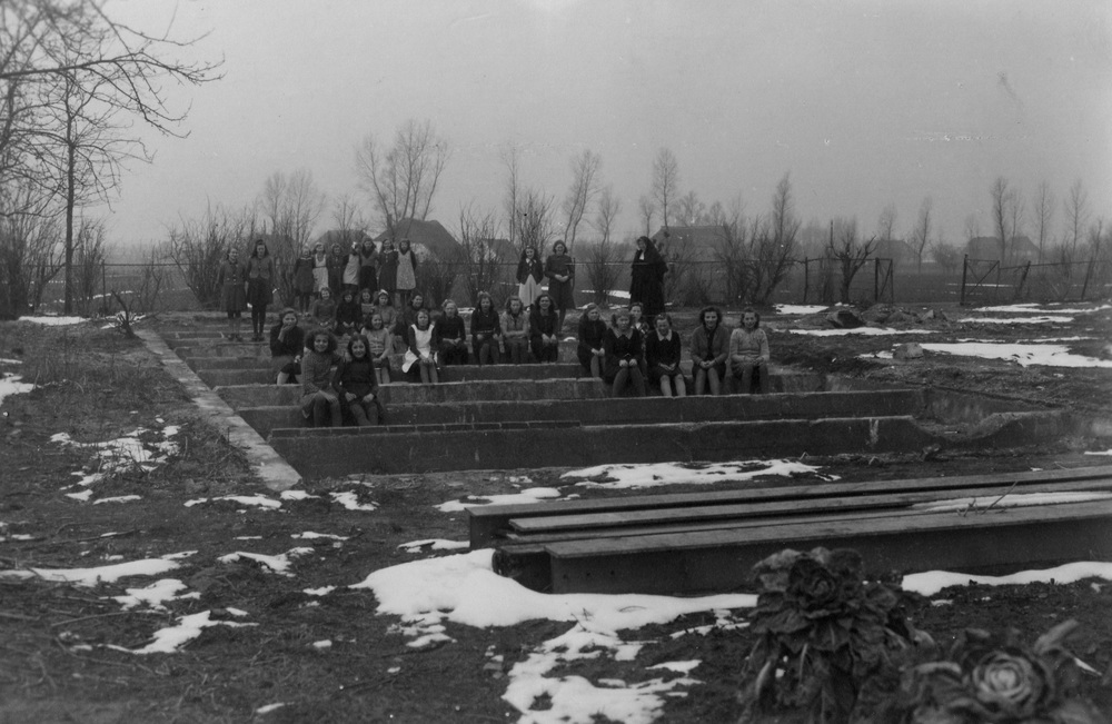 Leerlingen uit Loil zitten op de restanten van de fu...