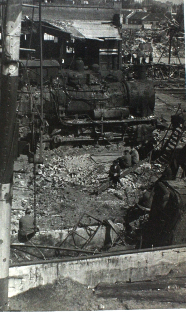 Tweede Wereldoorlog 1940-1945, vernielde locomotieve...