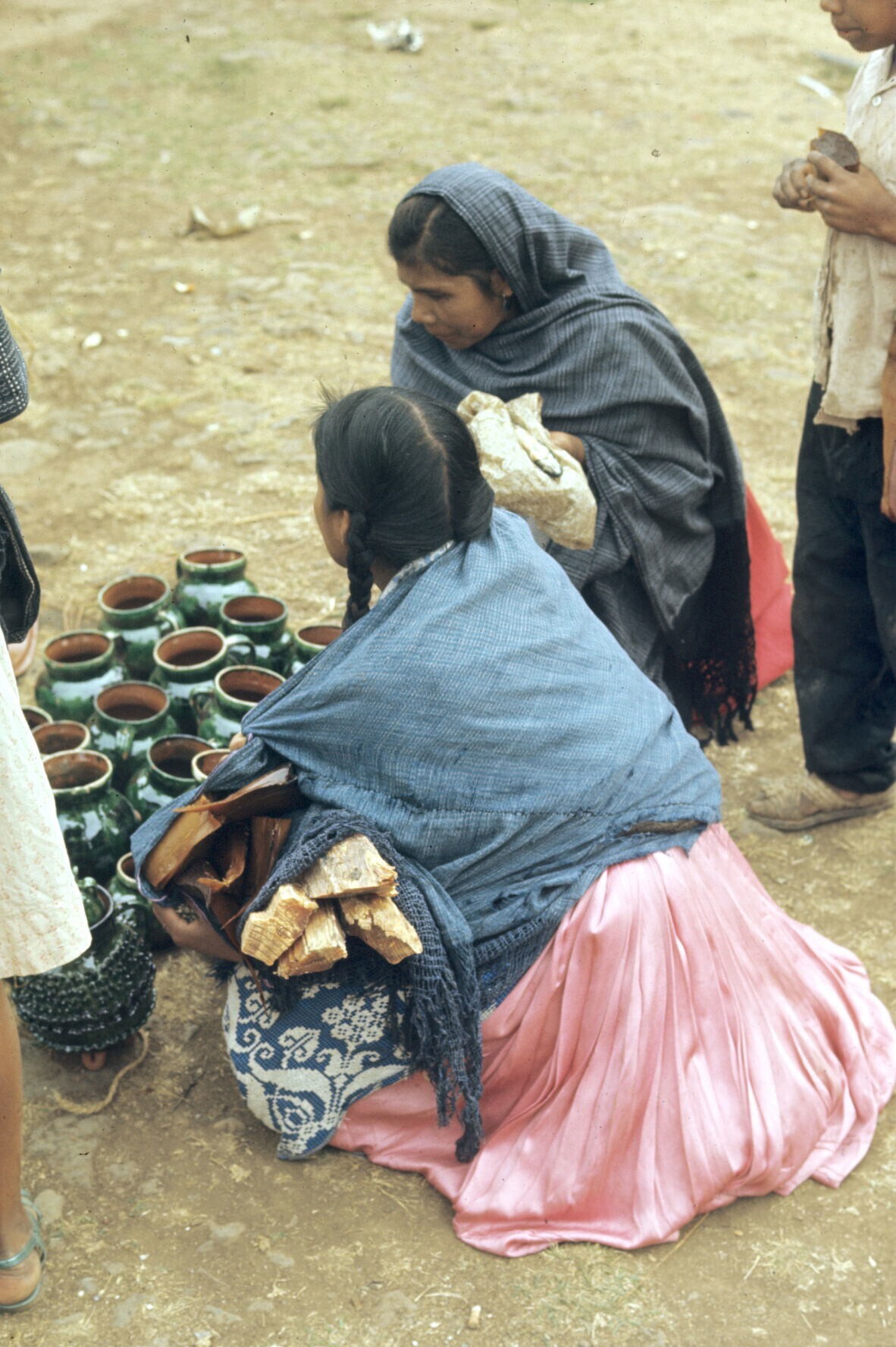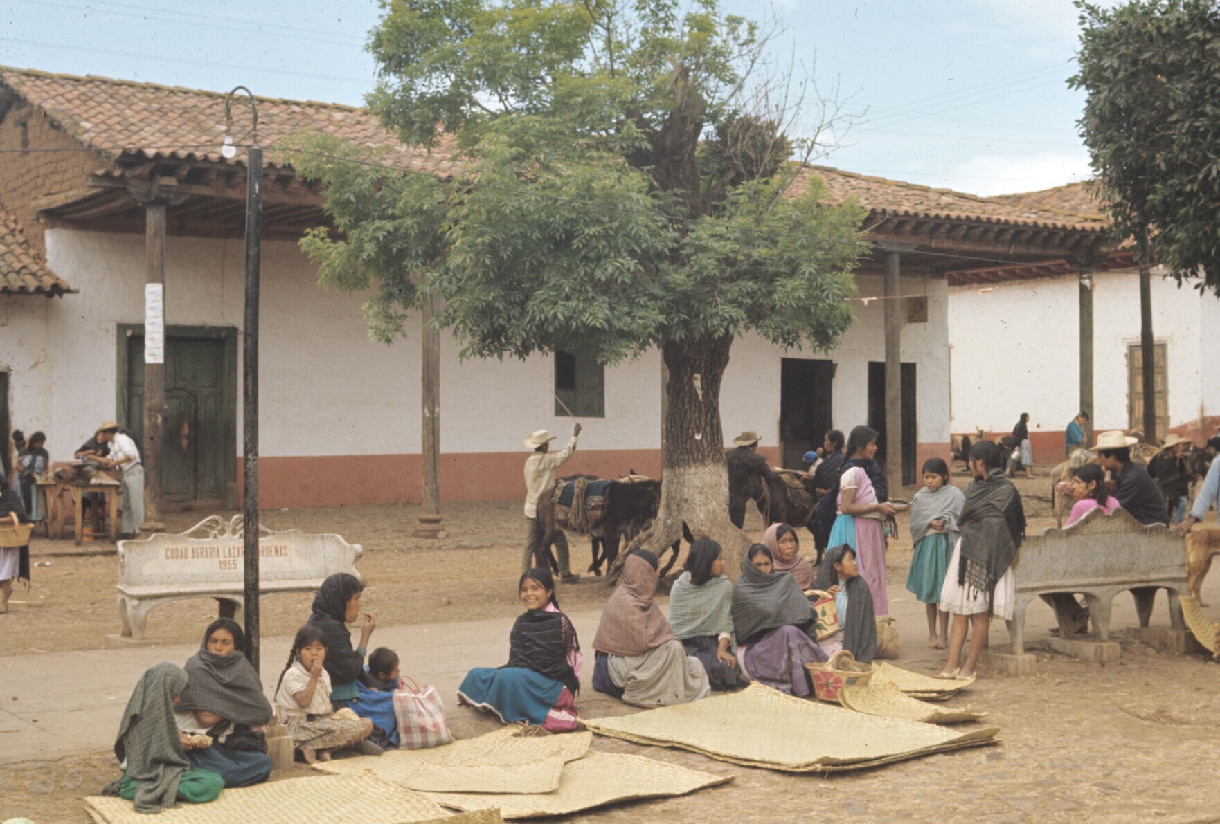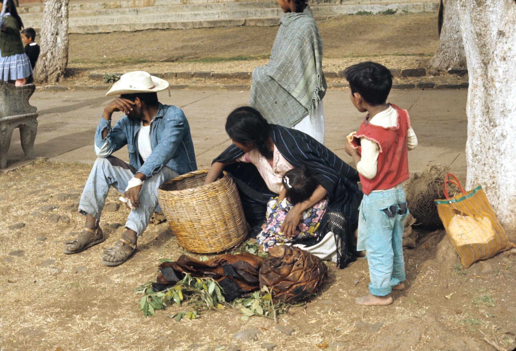 vrouw met rebozo (omslagdoek) en mannen in jorongo (...