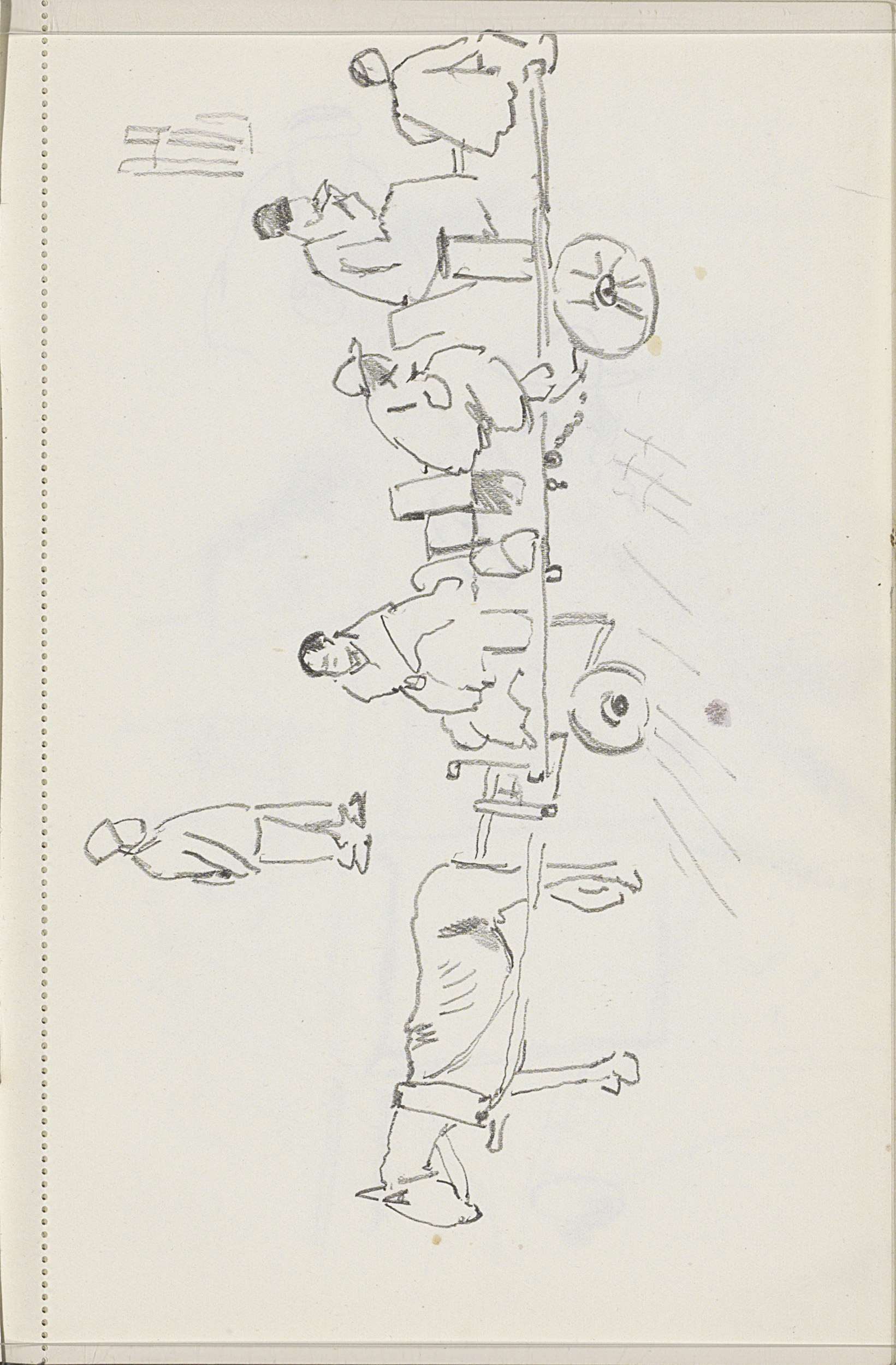 Zittende figuren en bagage op een paardenkar