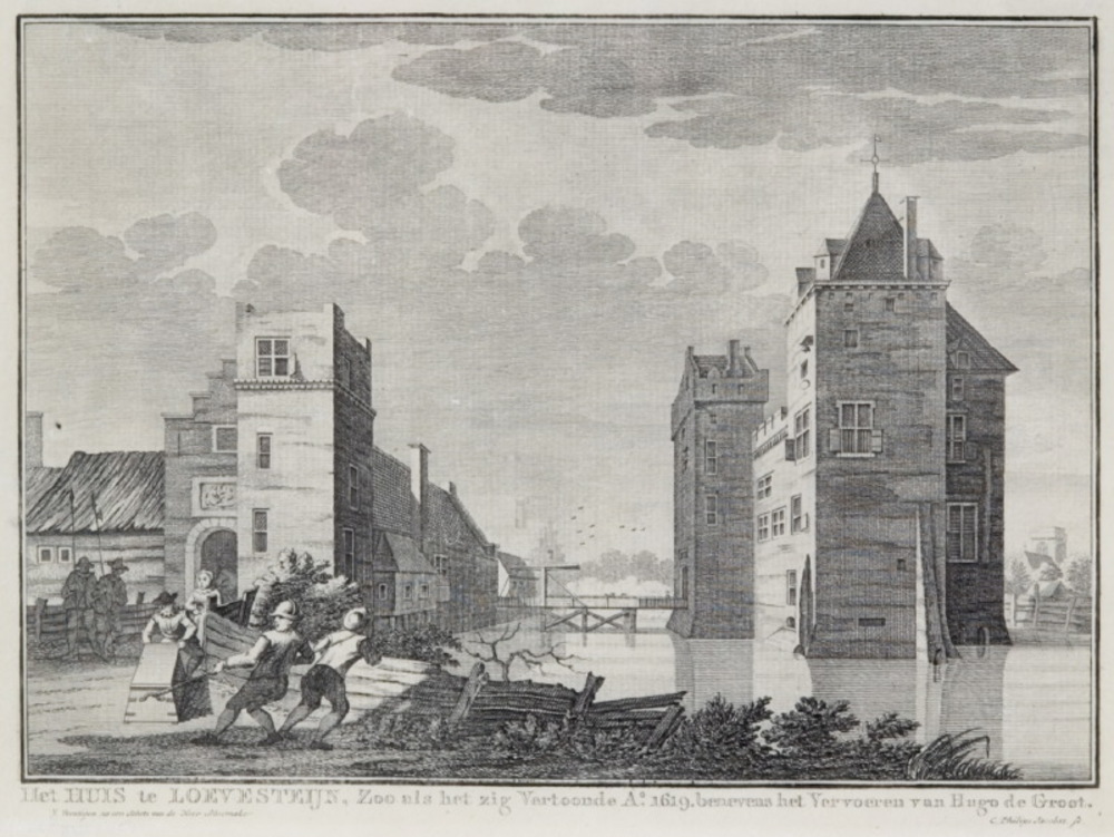 Loevestein vanuit het noorden, kopergravure, 18e eeuw