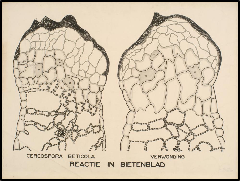 Phytophthora infestans (Mont) De By. Reactie van kno...