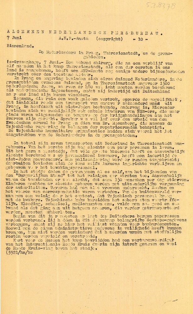 Vel: Algemeen Nederlandsch Persbureau, mededelingen,...