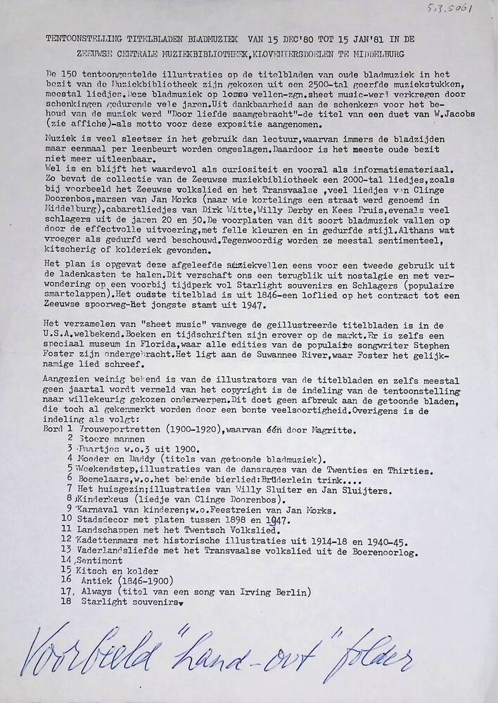 Beschrijving: "Tentoonstelling titelbladen bladmuzie...