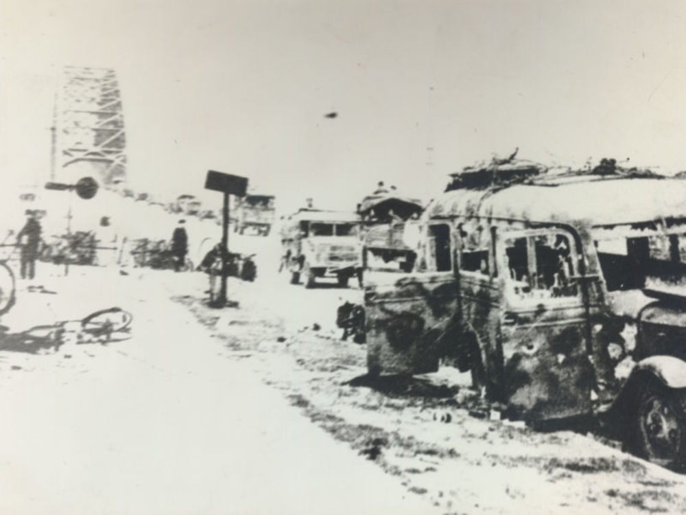 Foto Waalbrug Nijmegen, september 1944 met geallieer...