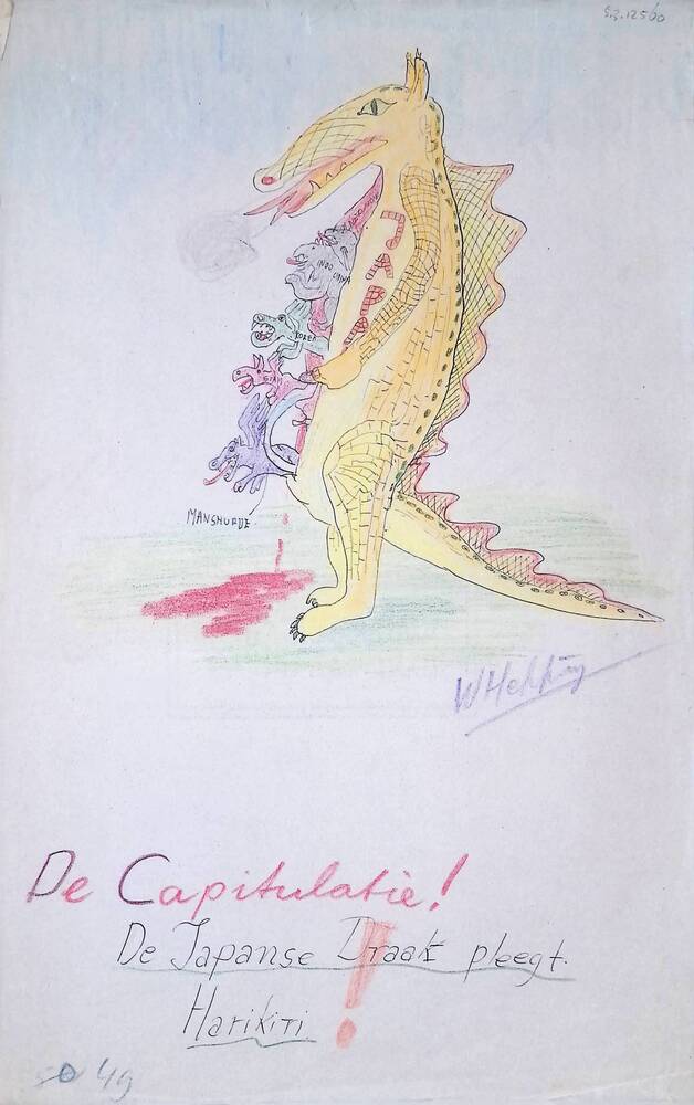 Spotprent "De Capitulatie! Japanse draak..."