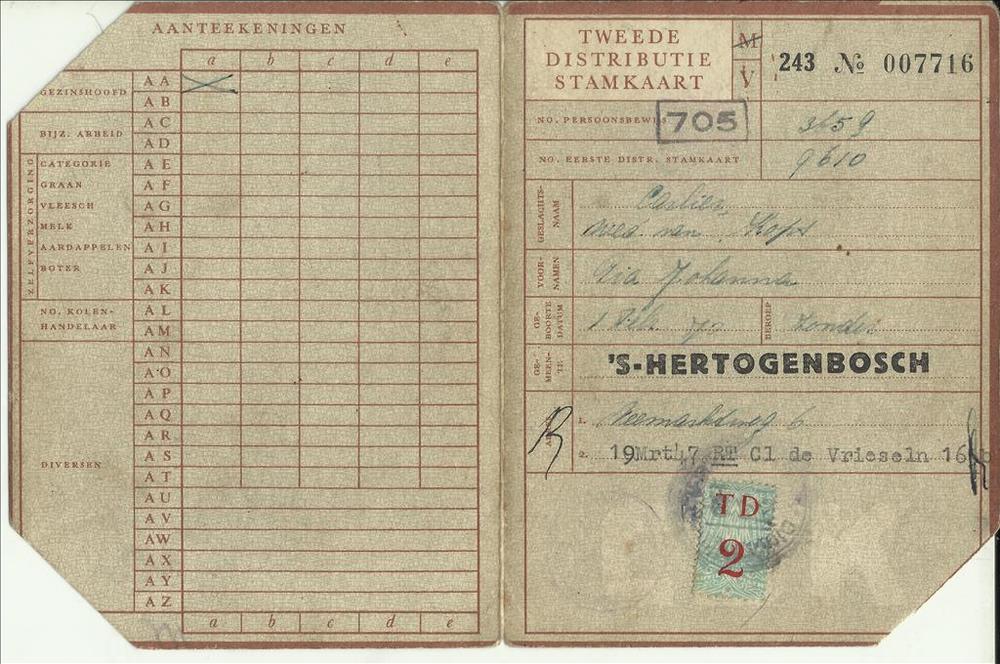 Tweede Distributiestamkaart op naam van Carlier Pia ...
