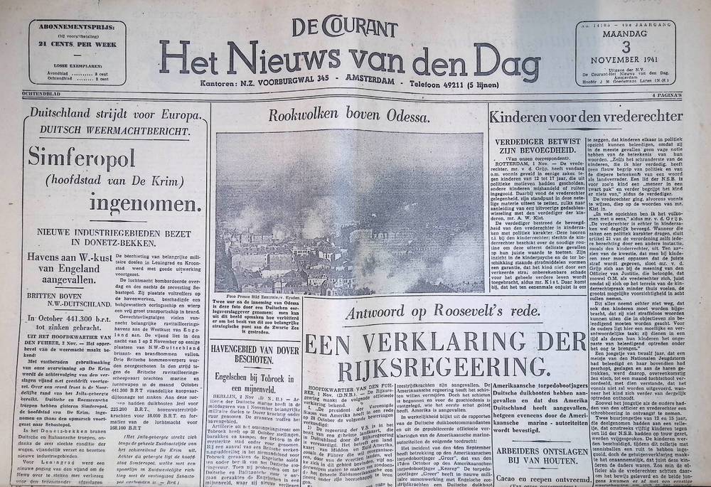 De Courant, Het Nieuws van den Dag, 3 november 1941