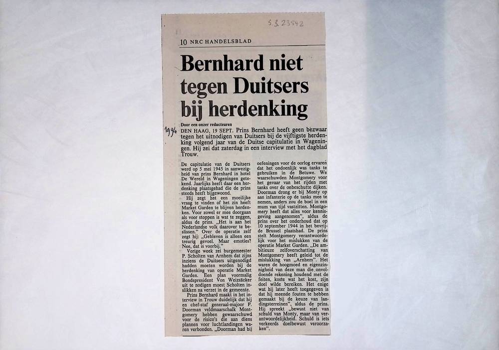 Bernhard niet tegen Duitsers bij herdenking, artikel...