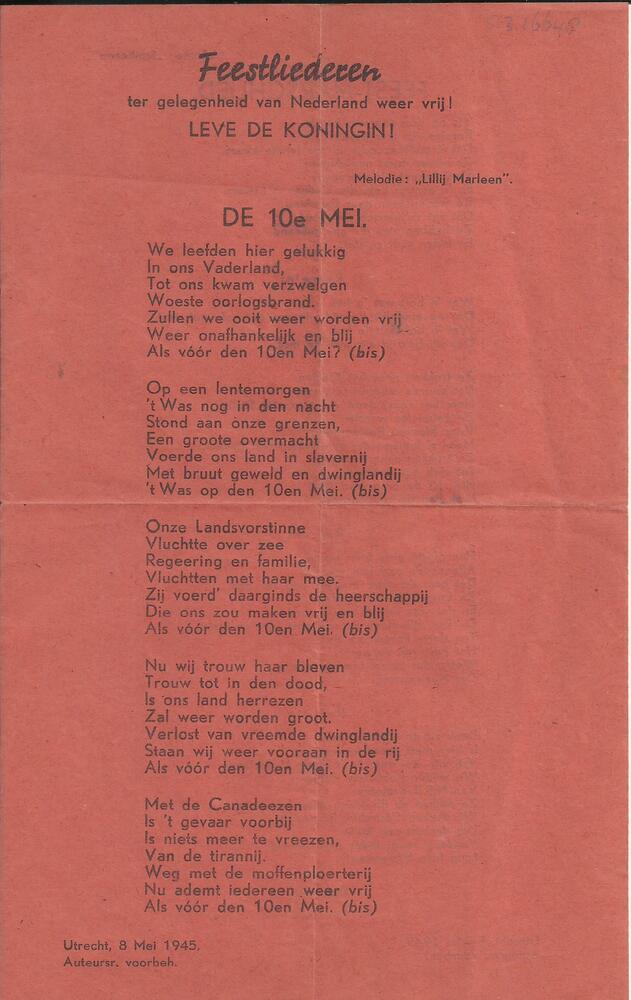 Feestliederen ter gelegenheid van Nederland weer vri...