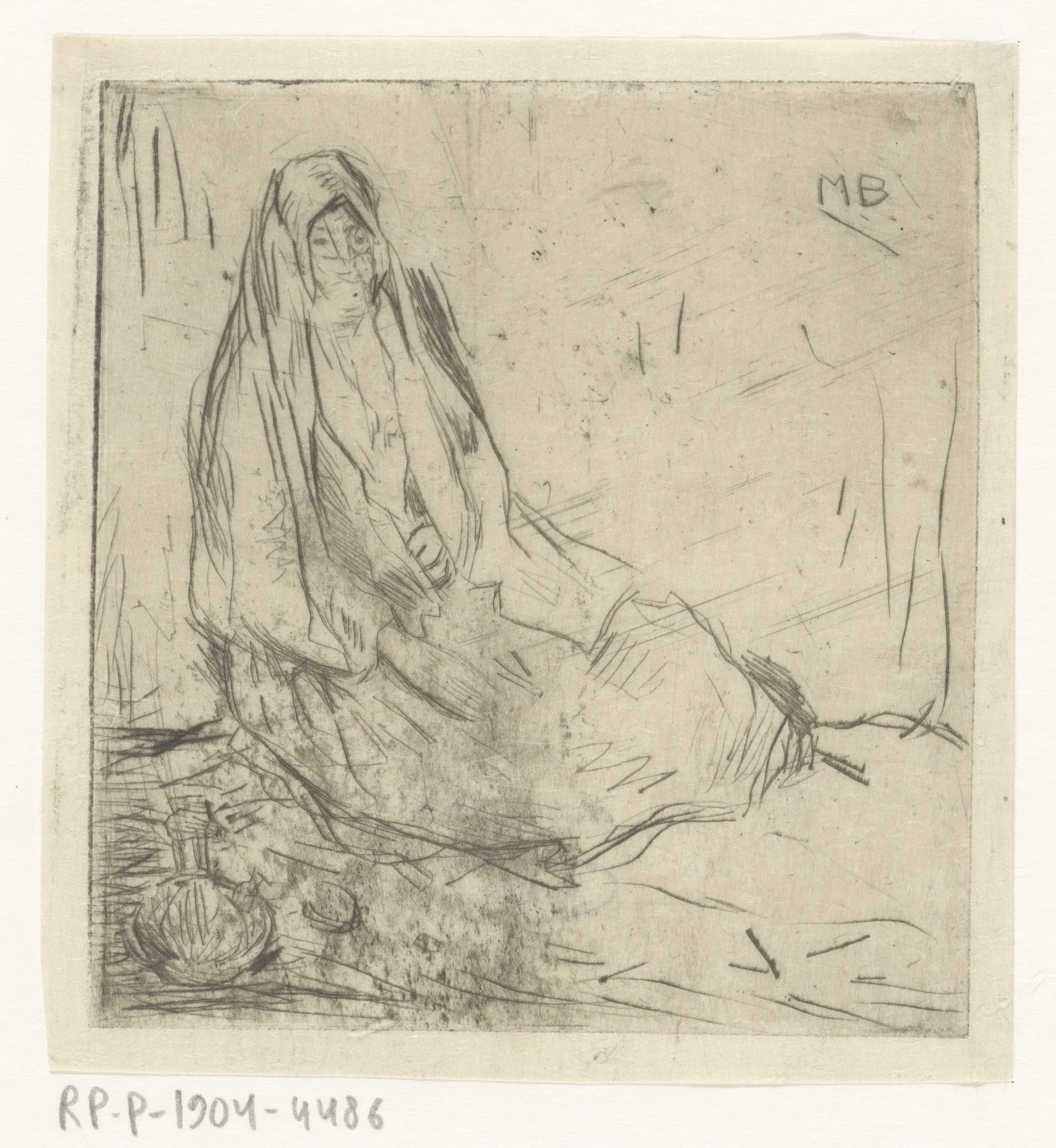 Zittende, gesluierde vrouw