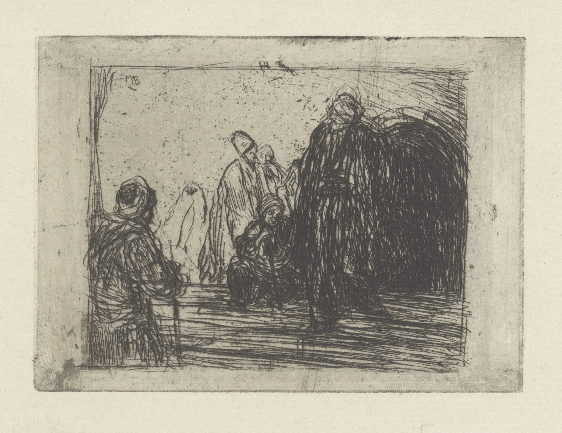 Zittende, gesluierde vrouwen