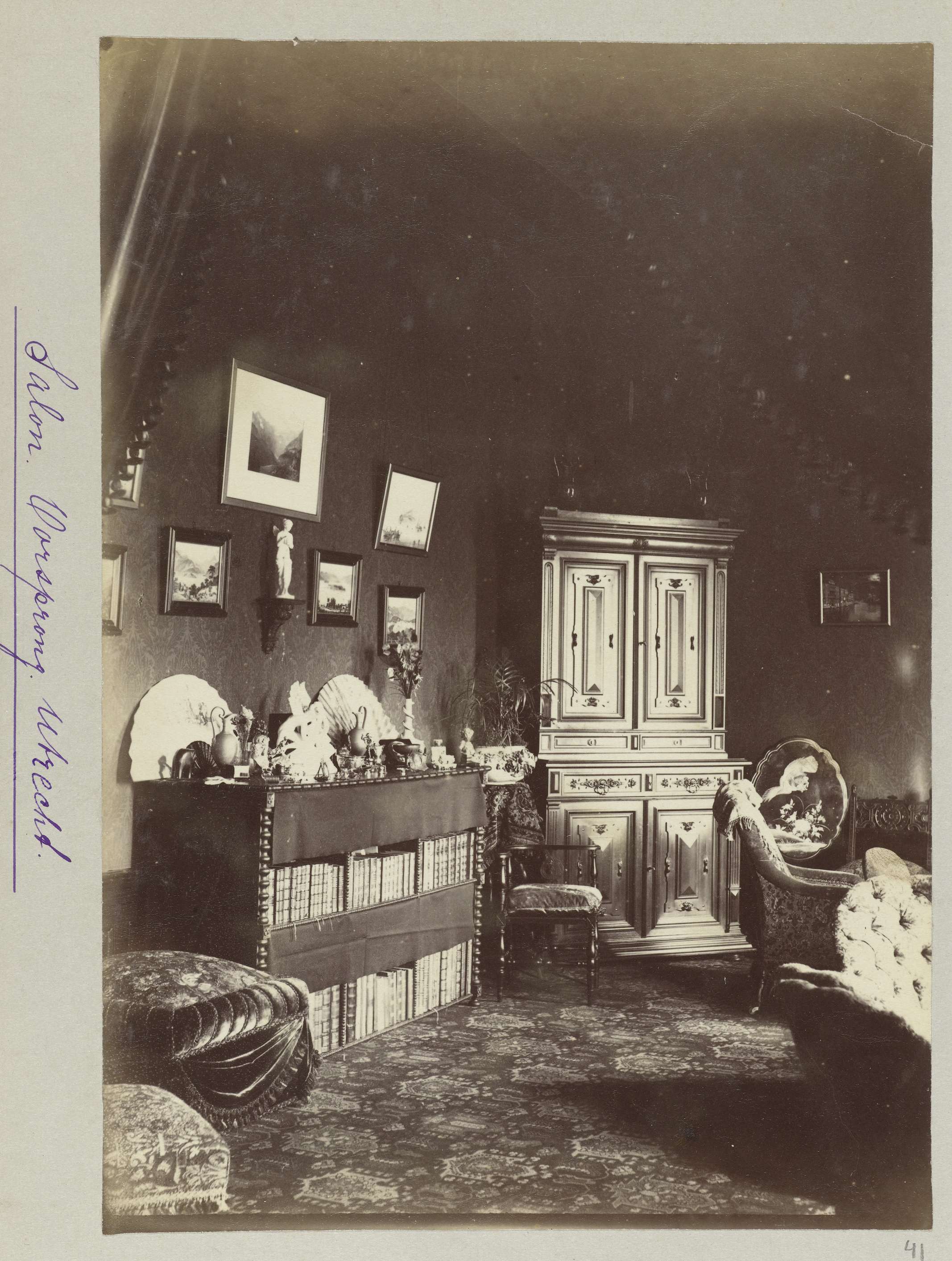 Kamer met boekenkasten en wandornamenten